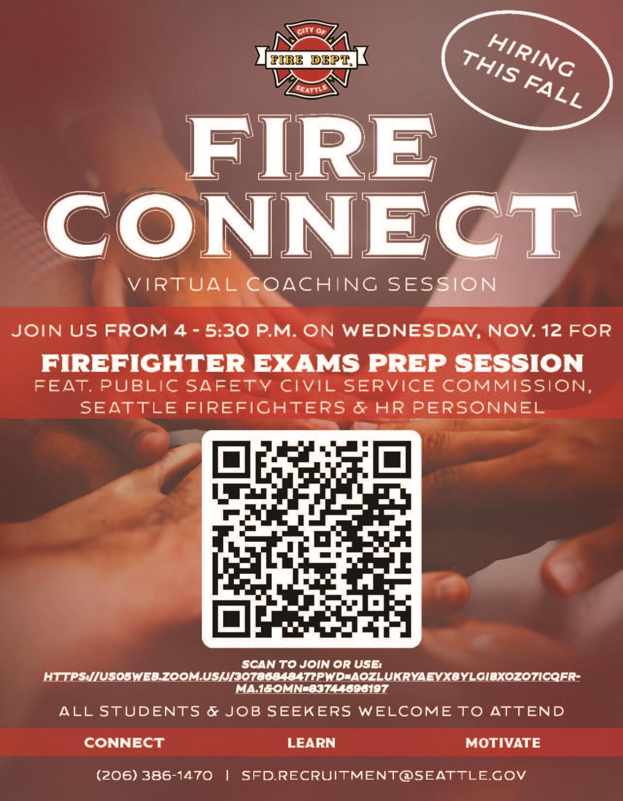 For more information on a career with the Seattle Fire Department, we encourage applicants to view our Fire Connect Podcast series. This webseries features interviews with SFD members about their experience in the fire service and their advice for new recruits.