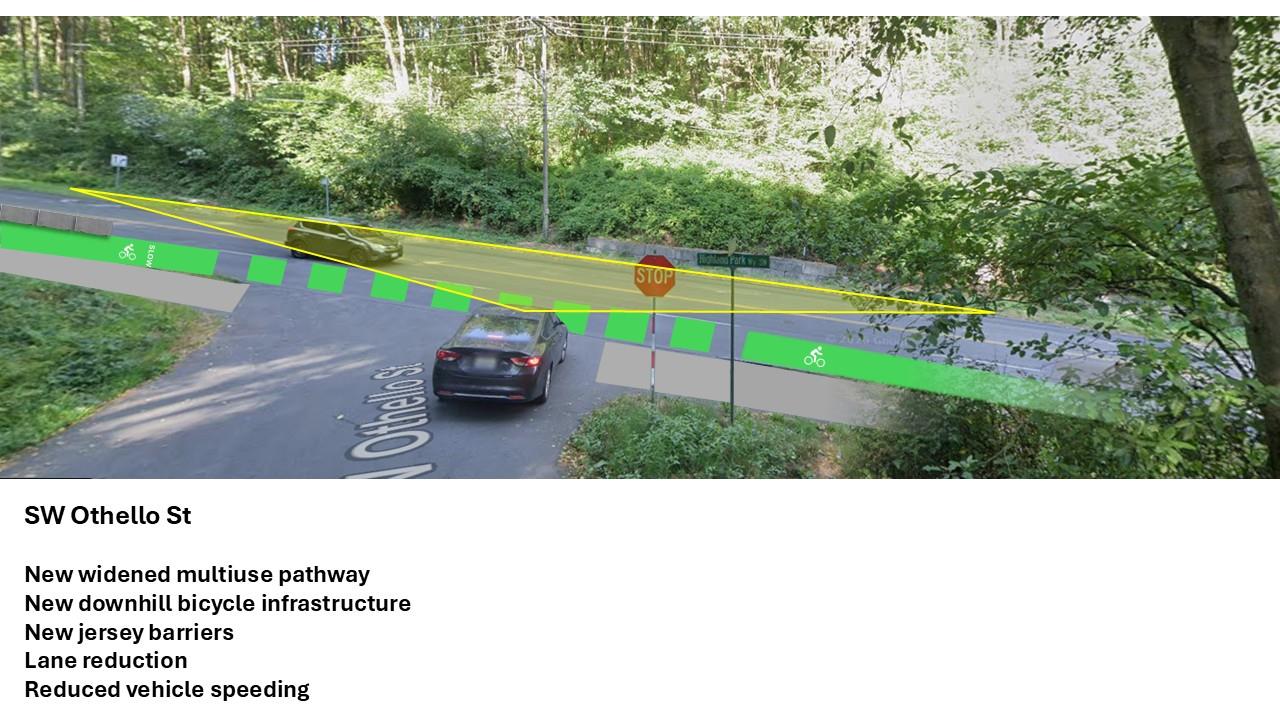 - Local Access: Residents on side streets, particularly SW Othello St, shared concerns about the difficulty of turning onto Highland Park Way as traffic is consolidated into fewer lanes.
