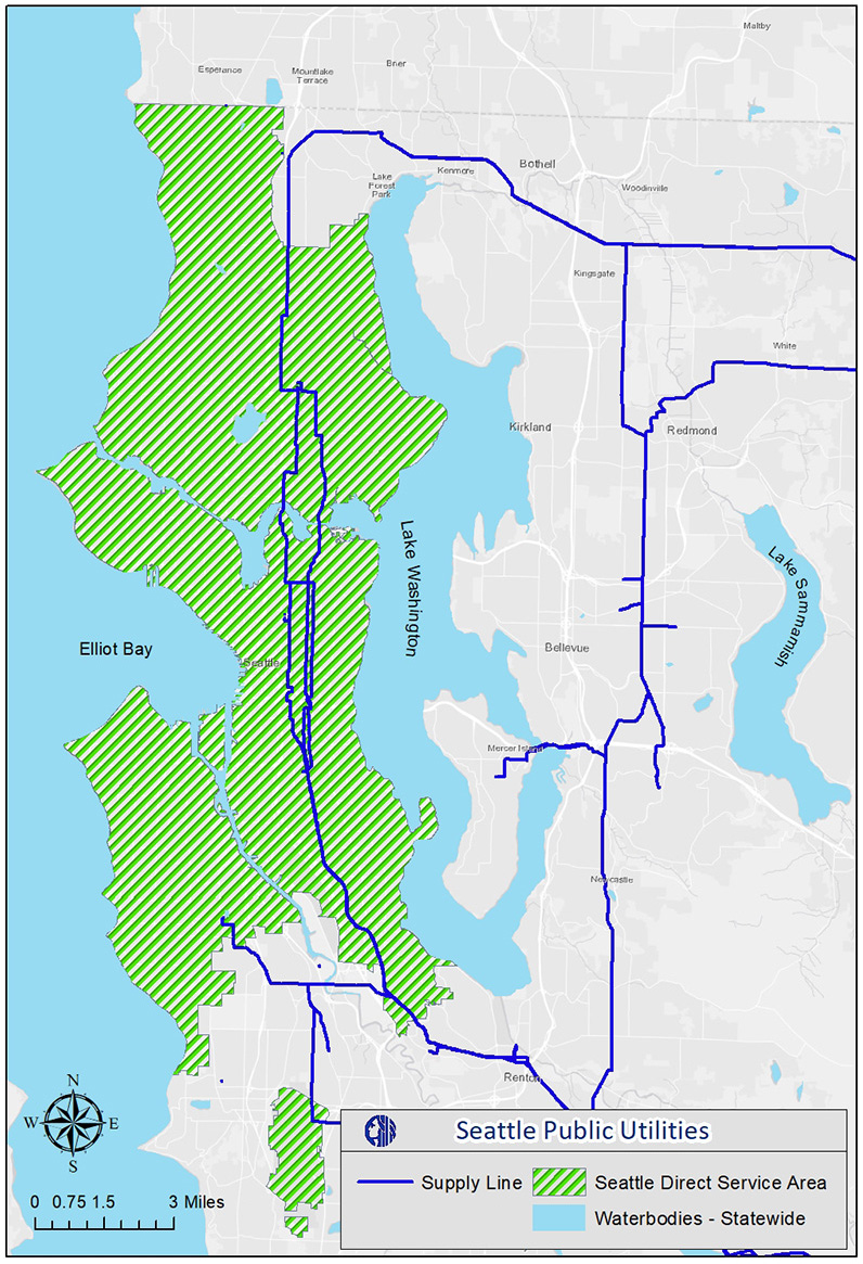 Our drainage and wastewater system is generally limited to Seattle’s city limits. Our direct water service areas extend beyond Seattle’s city limits and include: