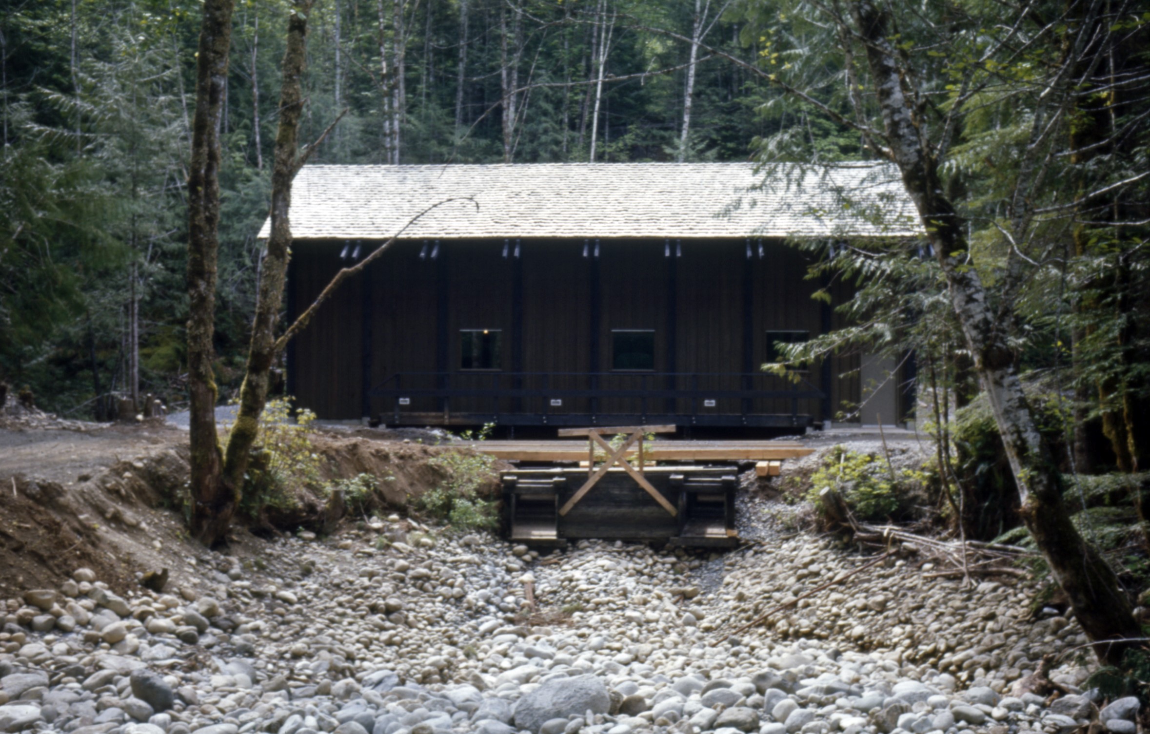 The powerhouse is rebuilt using the original turbines and generator. The headworks (dam and gatehouse) and vehicular bridge over Newhalem Creek, providing access to the powerhouse, are also rebuilt, all having sustained damage from recent flooding.