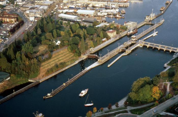 KISW radio personality Bob Rivers promoted the idea of floating a fiberglass orca near the locks to deter the seals, and listeners helped raise the funds to buy Willy from a Scottish fish farmer. A Shoreline Management Act exemption form described how the whale would be placed at a depth of 2 to 4 meters below the surface, anchored from its belly and with flotation buoys attached to its back. The City’s Department of Construction and Land Use signed off on the project.
