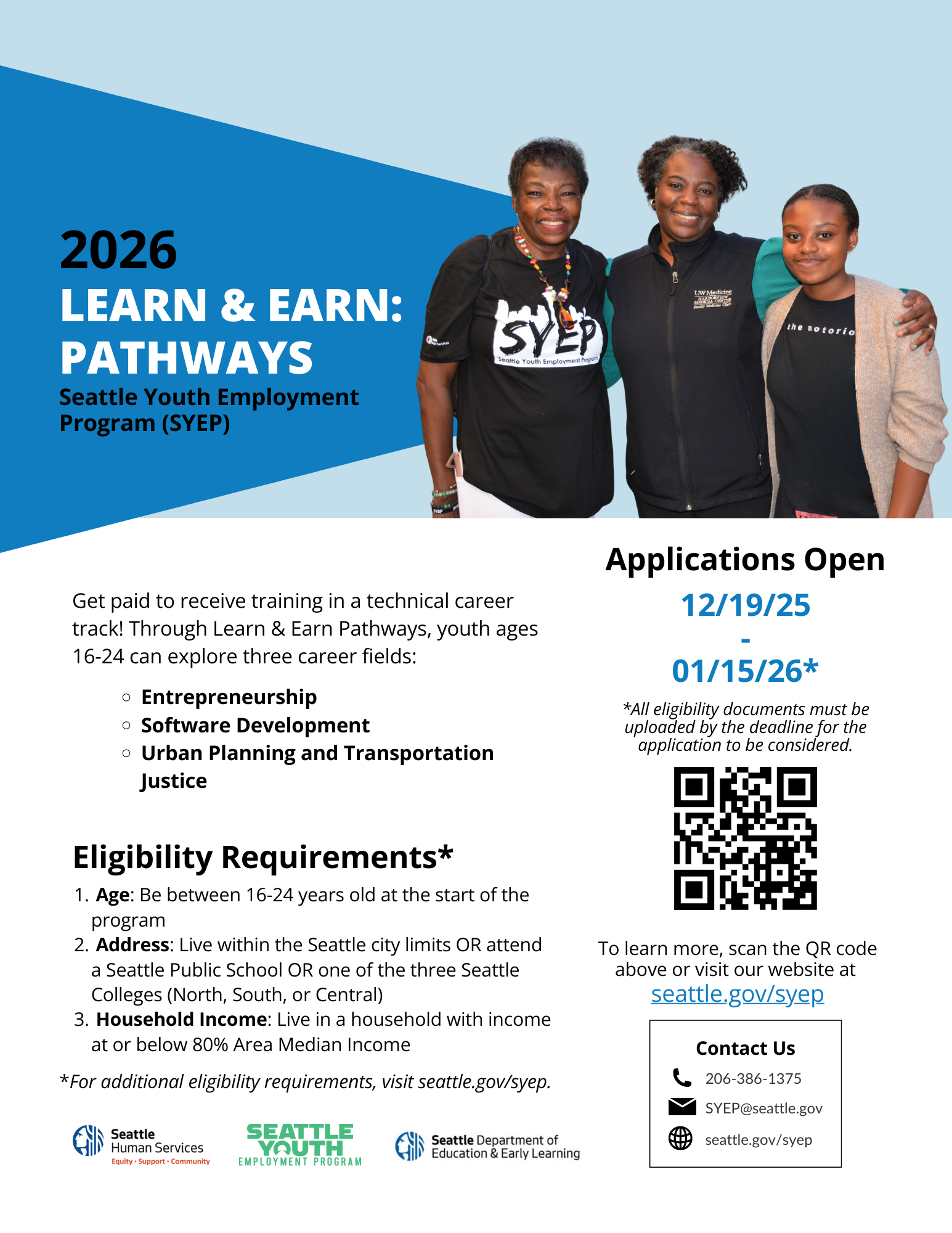 The Seattle Youth Employment Program (SYEP) features two programs to help you develop skills for life and work that will help achieve your current and future goals:
