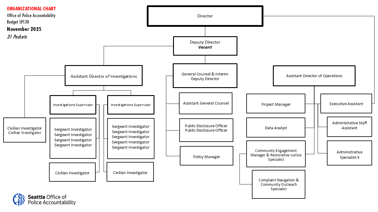 OPA is a hybrid oversight agency comprised of sworn and civilian personnel with 31 total pockets.