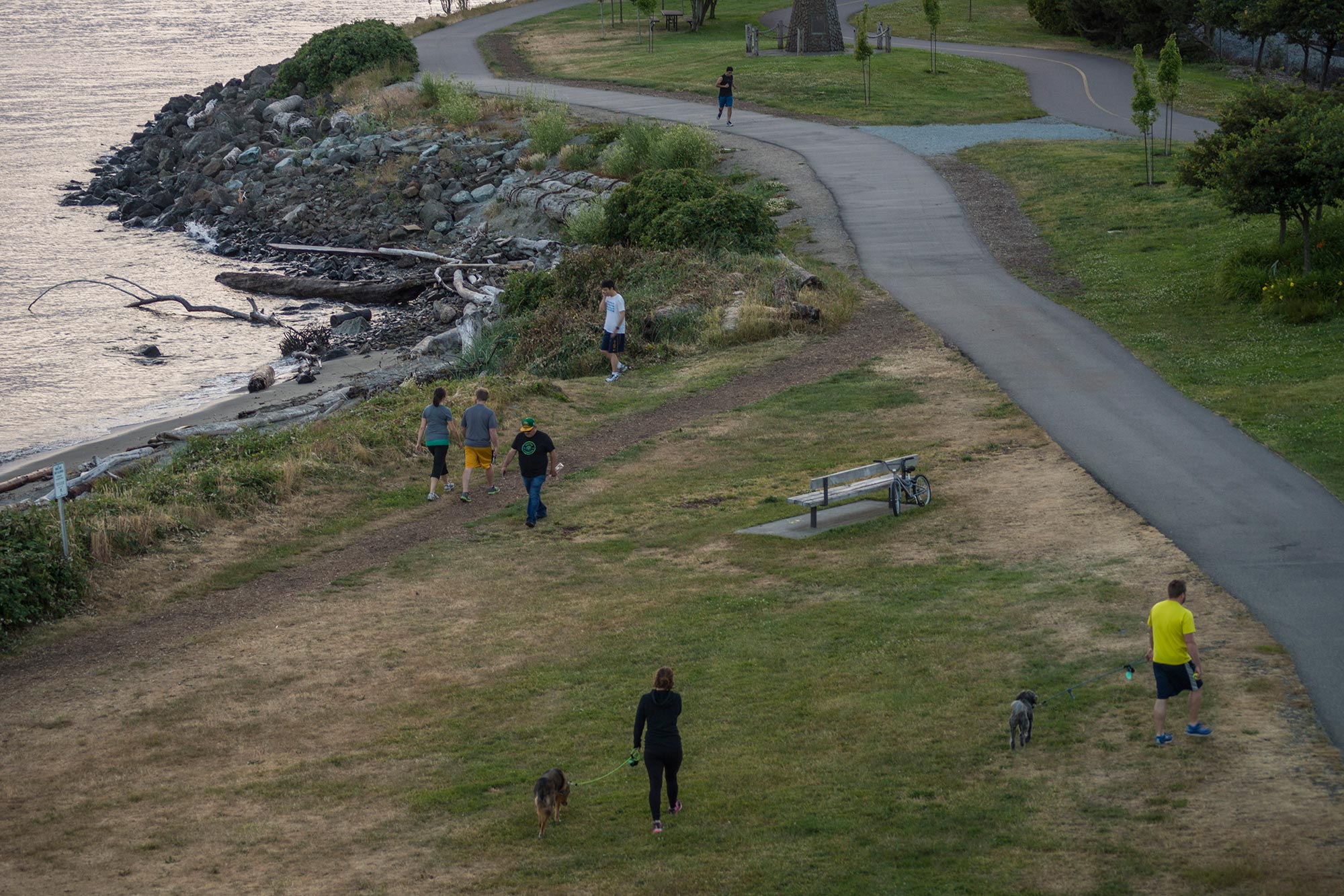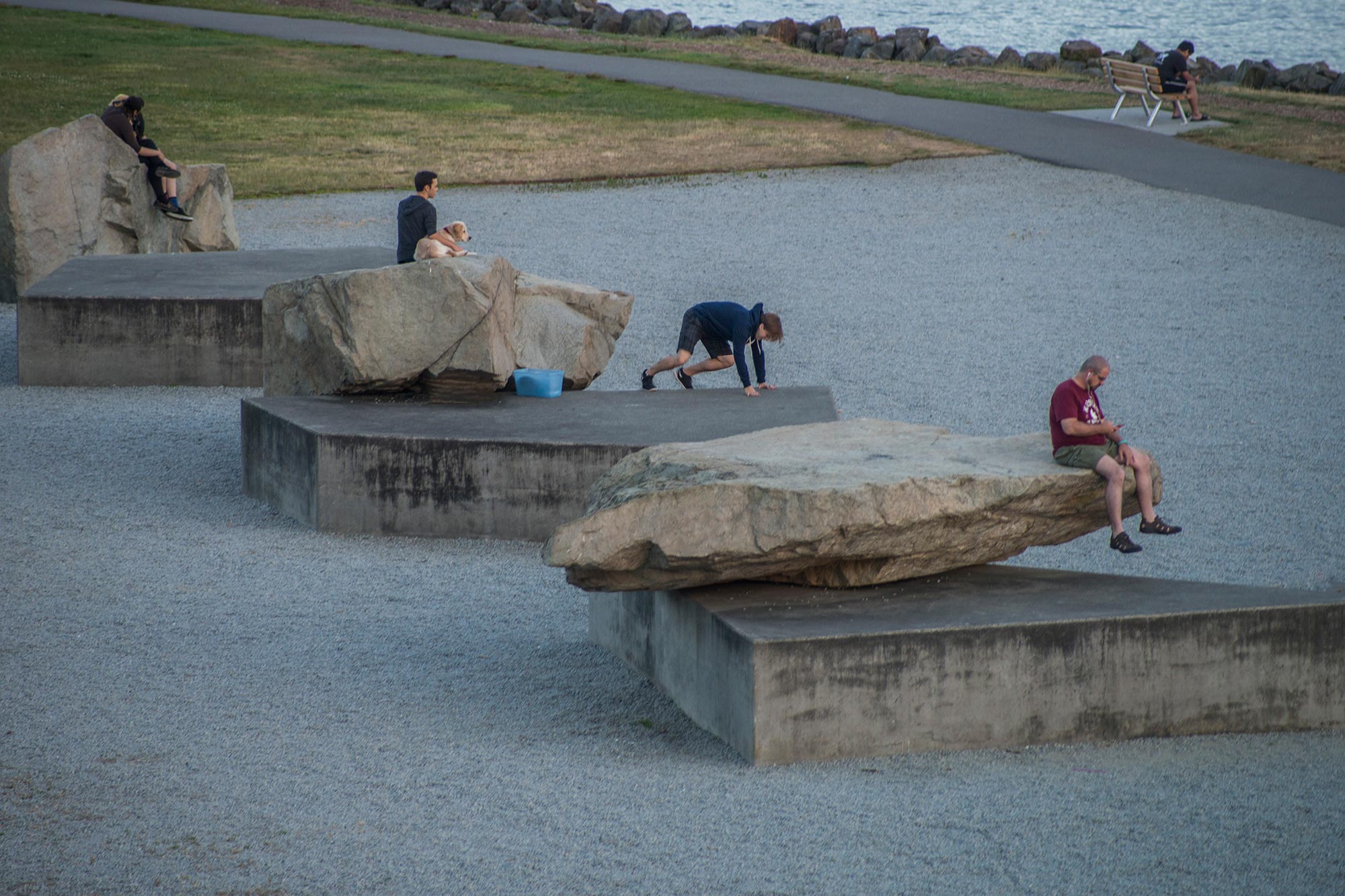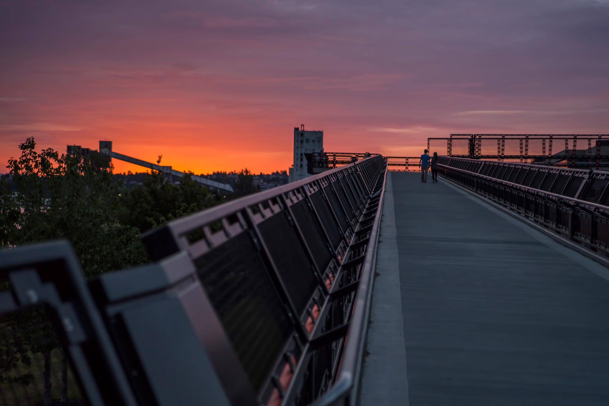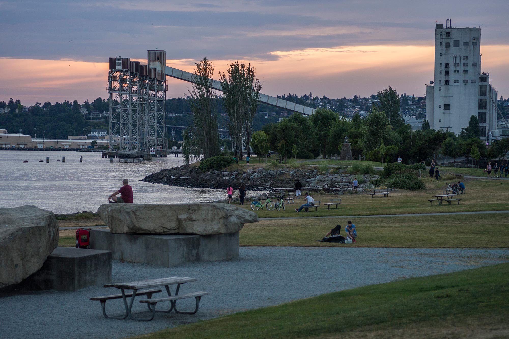 Myrtle Edwards Park has a 1.25-mile winding bike and pedestrian paths along Elliott Bay, fantastic views of the Olympics Mountains, Mount Rainier, and Puget Sound, easy access from downtown and easy connection to bike paths to Magnolia.