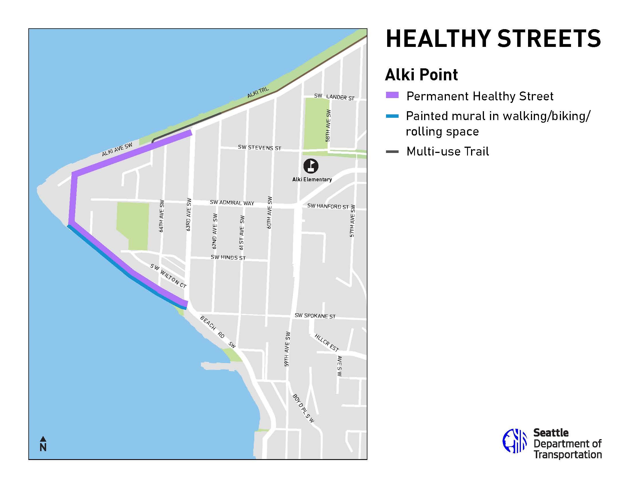 Map showing where we're making upgrades to the Alki Point Healthy Street.